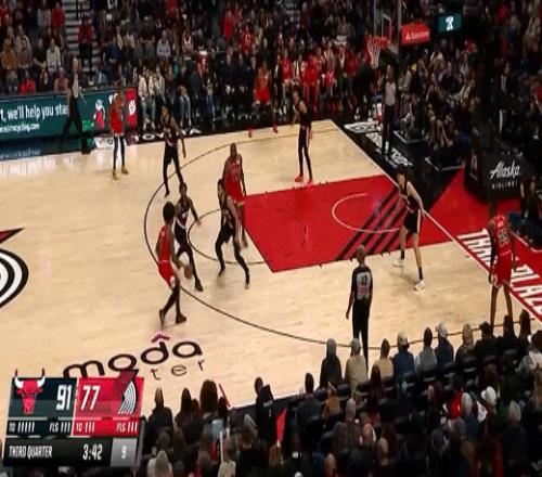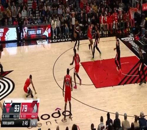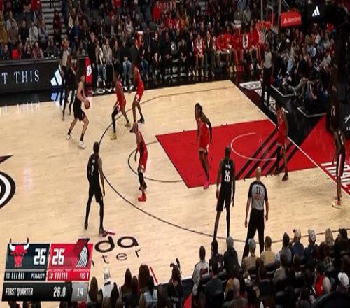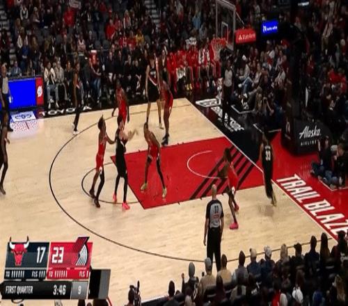 第三节开拓者格兰特拿下7分,公牛奥科罗拿下11分,第三节结束开拓者82-98落后公牛