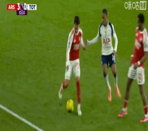第17分钟,萨卡与乌多基激烈拼抢,随后两人发生口角
