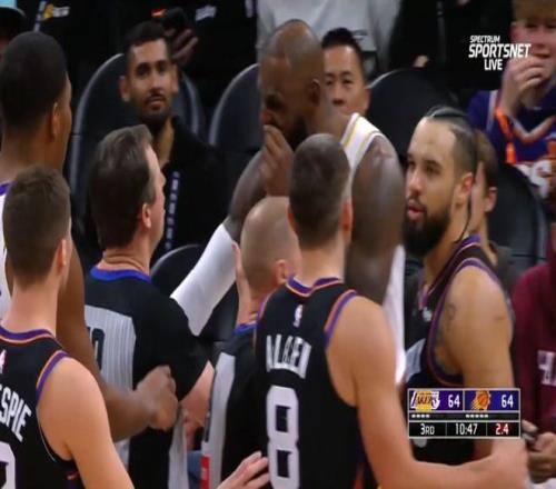 随后第三节,詹姆斯在防守狄龙时,狄龙把出界的球拍向詹姆斯,一度差点爆发冲突。