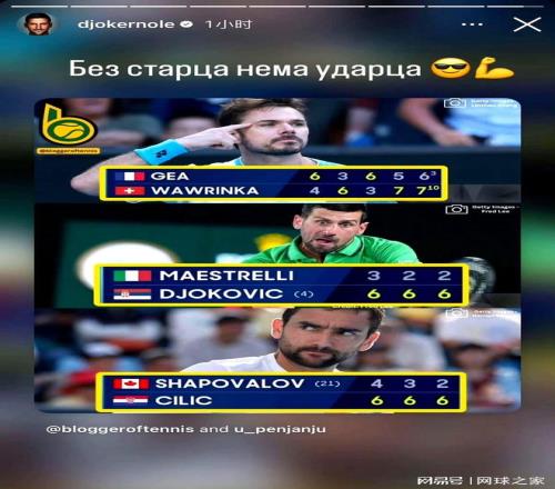 由瓦林卡、西里奇和德约组成的澳网不老男神团最终还是解体了,看到最后仅剩的德约接下来也将面对穆塞蒂的强有力挑战时,更让人觉得老将们在网坛打拼有多么不容易了。