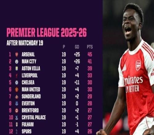 英超第11轮结束了5场比赛,最新积分榜如下!