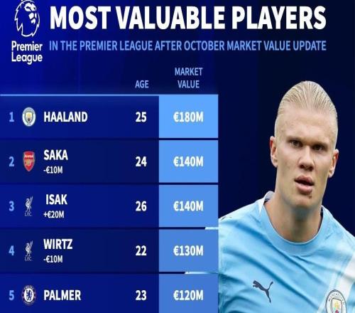 英超身价变更:维尔茨降至1.3亿欧,萨卡降至1.4亿欧,凯塞多升至1亿欧