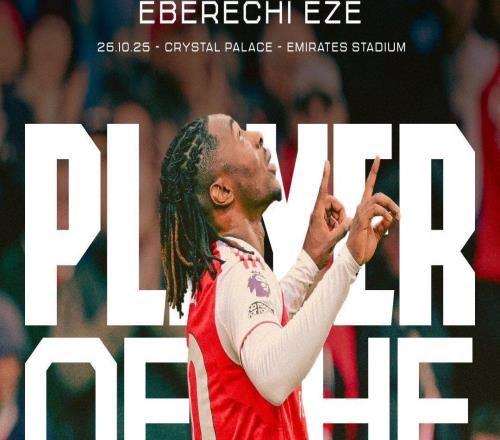 雷速体育10月27日宣 稍早前结束的英超第9轮比赛中,阿森纳主场1-0击败水晶宫。比赛中,埃泽代表阿森纳首发出战,并打入全场唯一进球。赛后,阿森纳官方也宣布,埃泽当选本场比赛全场