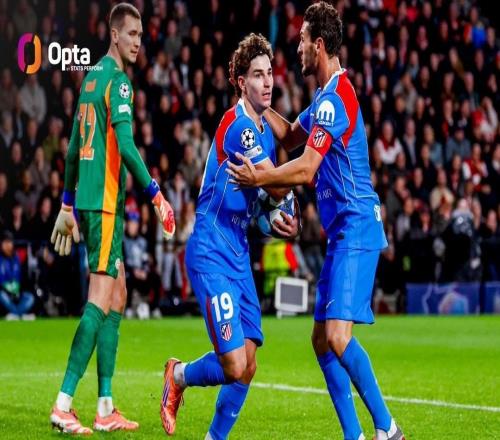 欧冠联赛阶段第6轮,马德里竞技客场对阵埃因霍温,上半场阿尔瓦雷斯破门为马竞扳平比分,至此,阿尔瓦雷斯马竞生涯已打入11粒欧冠进球,队史仅次于格列兹曼。此役客场对阵埃因霍温,阿